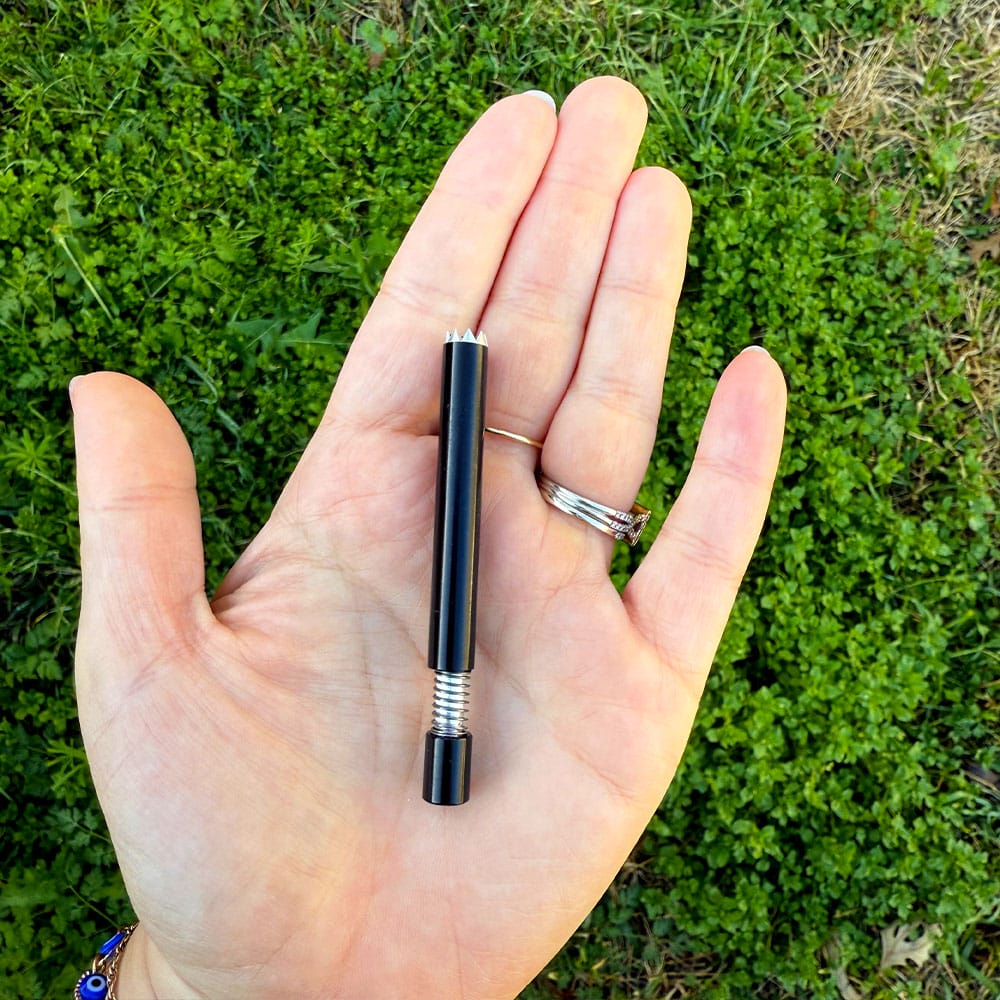 Say goodbye to sticky fingers and clogged pipes. This grinder tip one hitter lets you grind directly into your pipe, then eject the ash with a quick push thanks to the built-in spring-loaded cleaner. Perfect for use with dugouts or on its own, it’s a must-have for any one hitter fan.